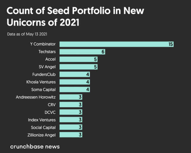 创业加速器Y Combinator对独角兽的种子投资最多。总部位于加州山景城的Y Combinator通过其Continuity基金,在随后的几轮中投资了其中14家公司。