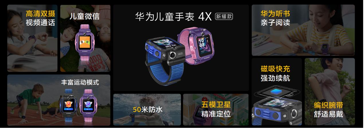 全新升级的华为儿童手表 4X 新耀款,搭载儿童手表版微信,支持高清视频通话,手表和手表、手表和手机都能轻松加好友;支持50米防水,游泳、跳绳等多种运动模式,让孩子爱上运动;丰富智趣应用,快乐长知识;11重AI定位安全守护,智能校准位置信息,无论室内室外,家长都能随时掌握孩子的位置。尼龙编织表带,魔术粘贴易戴、舒适透气,脏污易清洗,丰富的表盘随心选择,为孩子开启探索世界的“腕”上窗口。
