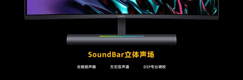 创新体验上,华为MateView GT创新的一体式SoundBar底座,既是底座也是双扬声器,一物两用,让机身设计更简洁;SoundBar中还加入了炫酷的灯效,8种灯光效果可以随心调节;华为还在SoundBar上加入了触控条,指尖轻轻滑过,扬声器音量便可随心而控;为游戏玩家设置的双麦克风智能拾音系统,自带智能降噪,回声消除的功能,高达4米的远场拾音(数据来源于华为实验室),让你摆脱耳机线的束缚,随时随地开黑语音。