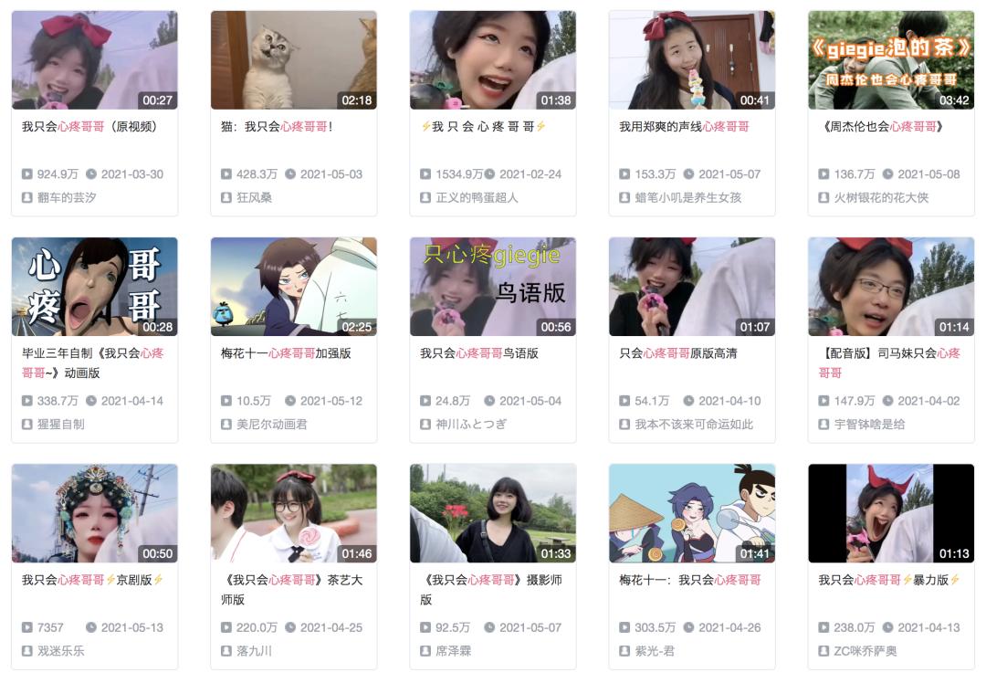 在B站,仅仅是搬运原视频的投稿播放量就900w+,各种二创视频更是条条爆款,叫giegie的人自成一派,颇有跟“郭语”叫板之势。