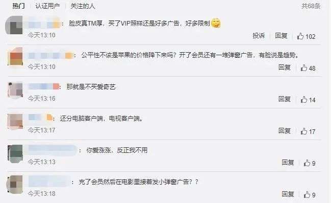 除此之外,爱奇艺还推出了超前点播及星钻会员功能,这意味着,即便已支付会员仍需要额外付费,以及仍无法享受无广告服务。这些向会员动刀的举措引起用户不满,被批吃相难看,并数次登上热搜榜。