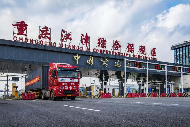 江津综保区大力发展多式联运,利用《国际公路运输公约》(《TIR公约》)为客户制定了公铁联运跨境运输方案,货物从越南铁路运输抵达江津综保区完成保税集拼后,在阿拉山口口岸换装TIR车辆后从阿拉山口出境直达波兰华沙。TIR车辆在海关签封下,中途可不受检查、不支付关税、也可不提供押金,这简化了过境流程,降低了海关与物流公司的管理成本。2020年8月,江津综保区首票国际公路运输(TIR)——“中欧卡车”启运,在历时14天后,行程9500公里成功抵达波兰。江津综保区除了培育TIR中欧卡车运输物流品牌,还成功培育了陆海新通道铁海联运江津班列、亚欧国际保税集拼专线等物流品牌,国际中转集拼、汽车保税储存、供应链分拨配送等业态快速发展。