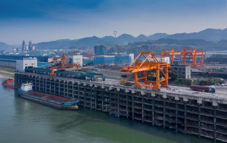 区域内,珞璜港是我市规划的“1+3”枢纽型港口之一,年设计通过能力2000万吨,常年可靠泊作业5000吨级船舶,2020年,珞璜港一期工程两个泊位已建成营运,形成600万吨货物吞吐能力,目前,珞璜港自有7公里铁路专用线与渝黔铁路小南垭车站接轨,具有铁路整列到发装卸能力,珞璜港新建3、4号直立式泊位水工施工平台搭设进程如期推进,待全部完工后,货物吞吐量将达到1090万吨,将进一步提高江津综保区铁水多式联运的能力,增强连接长江经济带和西部陆海新通道关键节点的辐射力和带动力,为中国西部地区物资进出增加了一条优质通道。