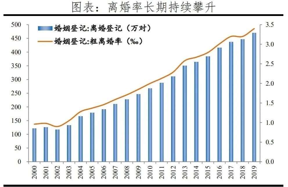 据统计,1987-2020年,我国离婚登记对数从58万对攀升至373万对。