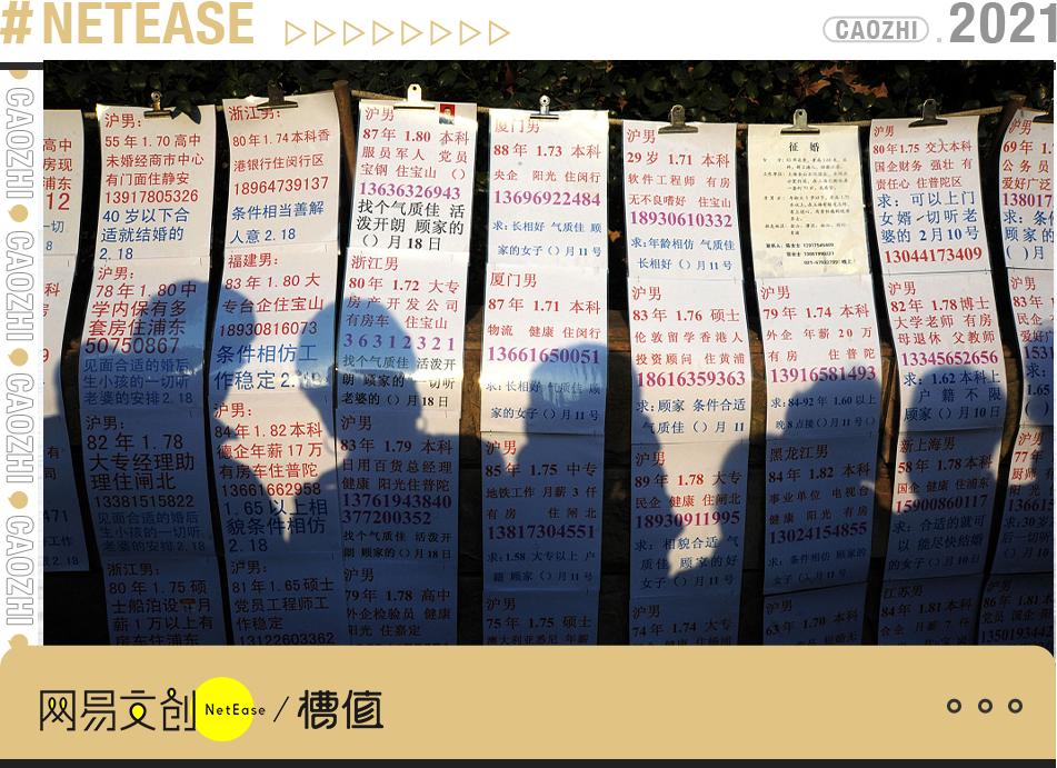 于是,在一旁“皇帝不急太监急”的父母,只能“奋力一搏”,将相亲角看作拯救子女婚姻的最后一根蛛丝。