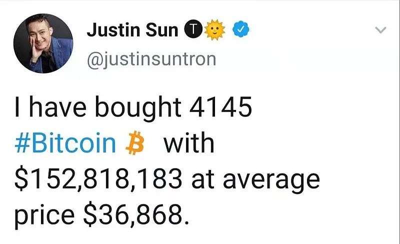 而被李笑来点名“忽悠”的波场币创始人孙宇晨,此前相当低调,直到比特币跌破4万美元之际才出来抄底,宣称以1.53亿美元购入4145枚比特币,均价为36,868美元,再次成为媒体的焦点。
