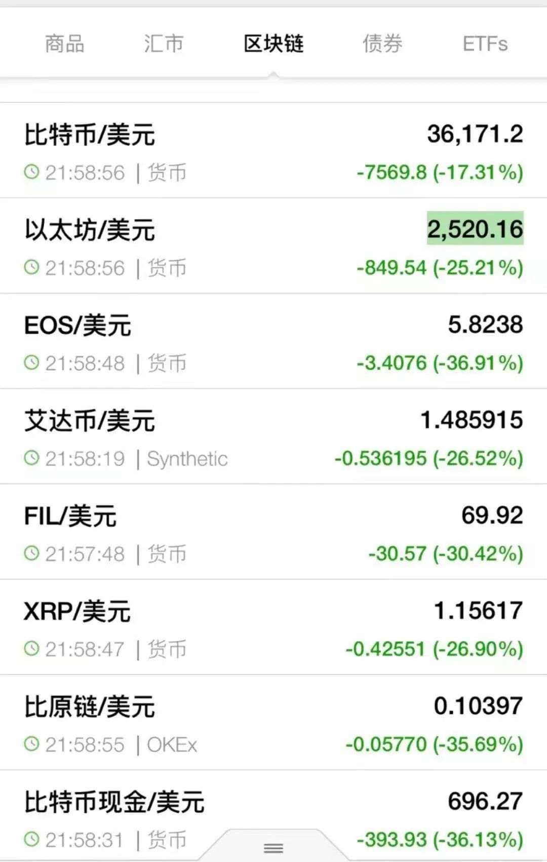 虚拟货币集体暴跌