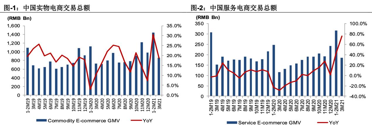 增速确实不错,不过应该也是意料之中,毕竟2021年一季度电商行业延续高景气,根据国家统计局数据显示,2021M1-M2实物电商零售额同比增速30.6%。随着疫苗接种规模扩大,中国经济前景向好,商业活动复苏,有利于提振国内的消费。此外,去年网购的用户培育做得很好,去年转化来的新用户将更频繁地网购。