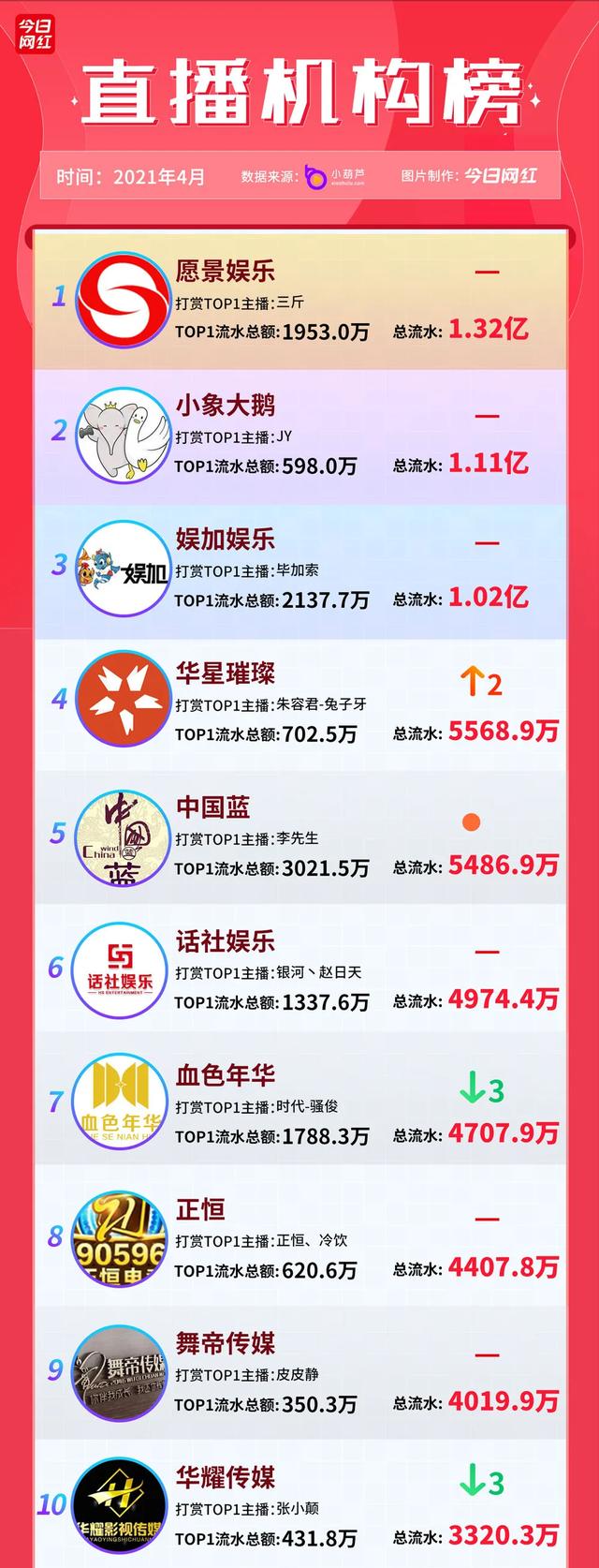 我们看到直播行业主播“滚雪球”式膨胀。4月份,据小葫芦数据统计的网红榜单显示,全网3家网红机构,单月打赏,流水过亿。排名前15的网红机构,月打赏总流水8.16亿。