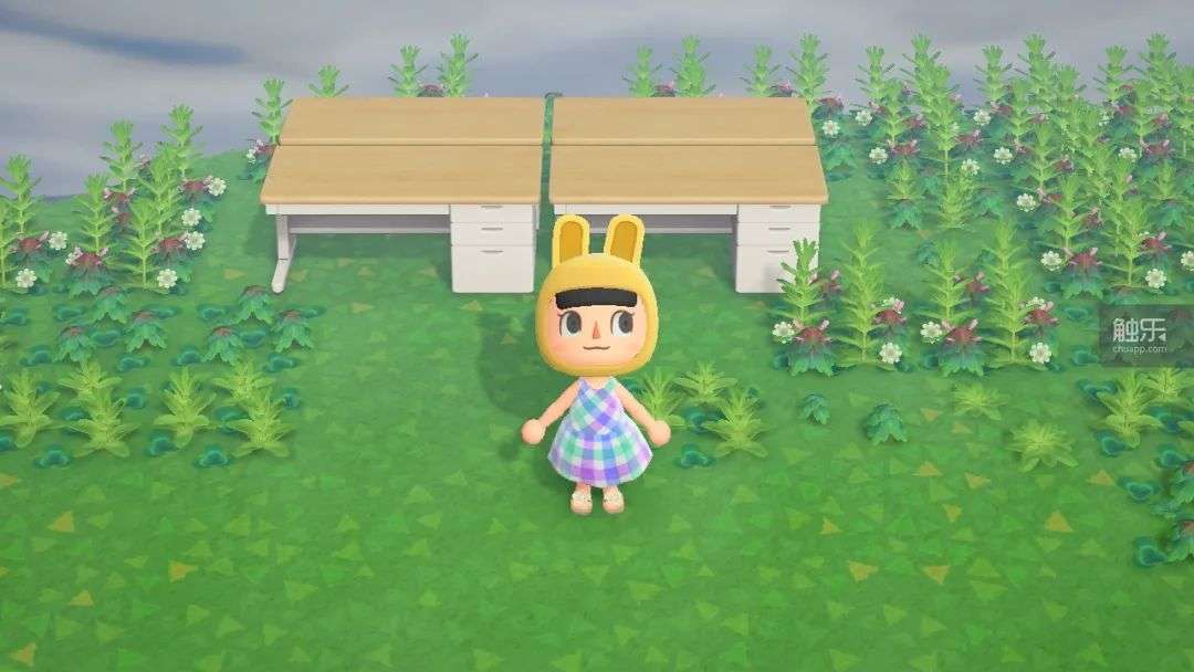 我曾经试图在“动森”里捏出大家在办公室里上班的情景——但你看,我最后只摆了桌子!