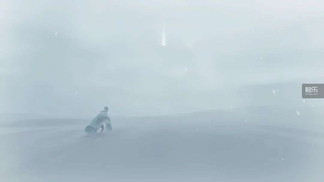 而在《风之旅人》中,比独自在风雪中死去更糟糕的,大概是独自来到山顶,站在轮回的光之门前。那里本来该有两个旅人开心地围着对方打转——有多少玩家在那片纯白的沙地上为一路走来的同伴踏出过爱心啊!我不知道第一次踏上旅程的小红袍是否顺利渡过了最后的试炼。我担心那位玩家不知道怎么顺利躲过石龙,怎么踏过风暴摧残的石阶。当他或她意识到自己必将在雪山死去,会感到害怕和孤单吗?更让我不愿细想的是,那个人会觉得自己被抛弃了吗?