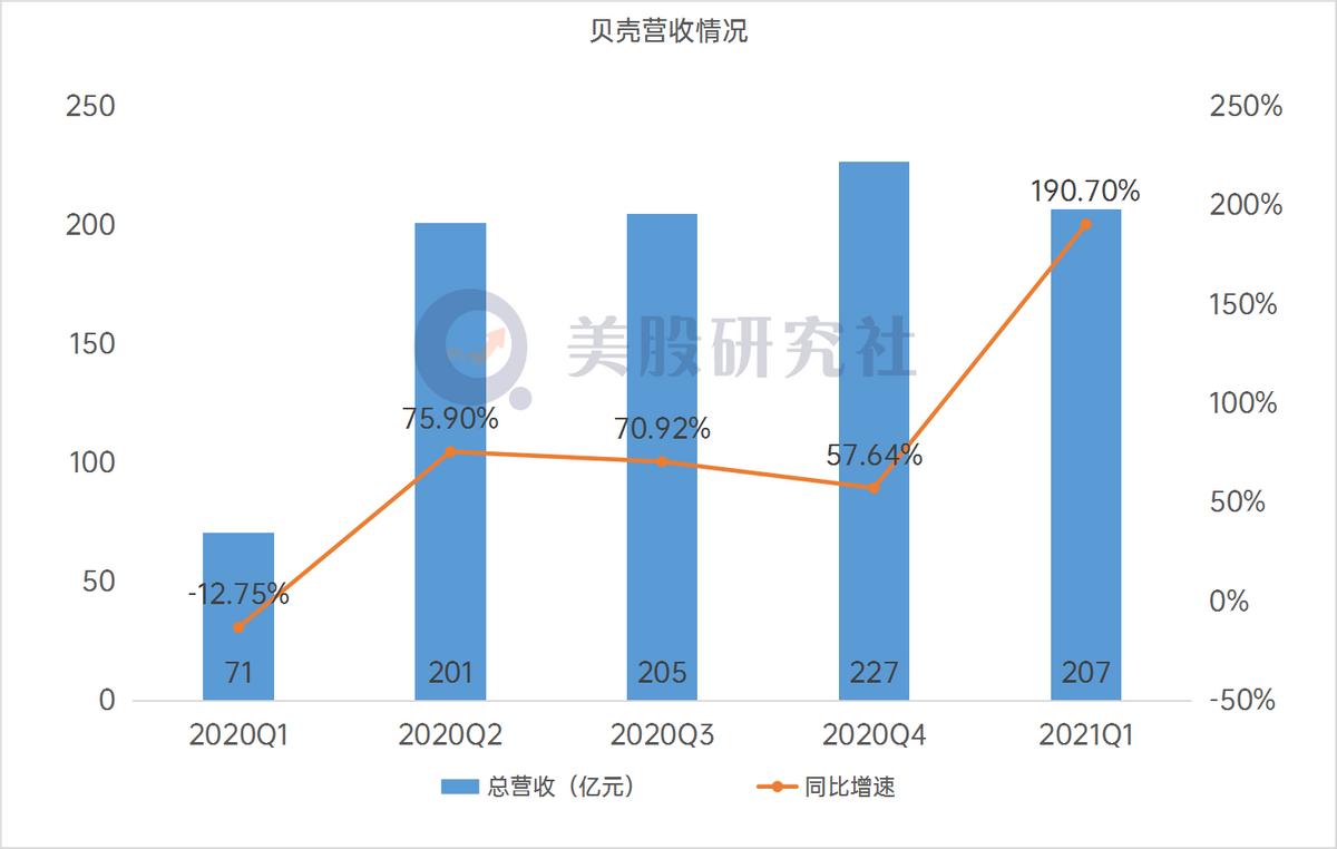 北京时间5月20日美股盘后,贝壳发布了2021财年Q1季度财报,在去年Q4成长明显的基础上,再次实现了营收和净利双等重点指标的明显上升,财报发布贝壳股价涨1.37%,报50.95美元。