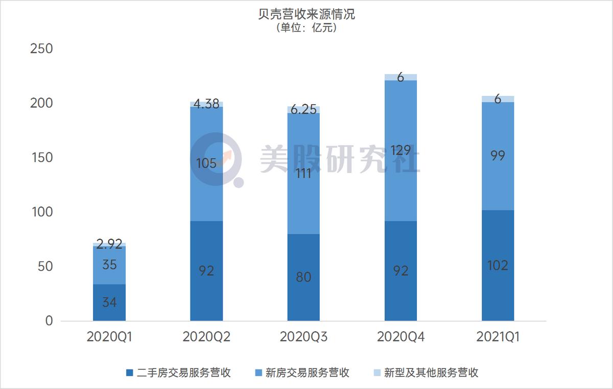 从收入来源看,第一季度贝壳存量房、新房、新兴及其他业务营收分别为101.96亿元、99.28亿元、5.72亿元,占比分别是49%、48%、3%。