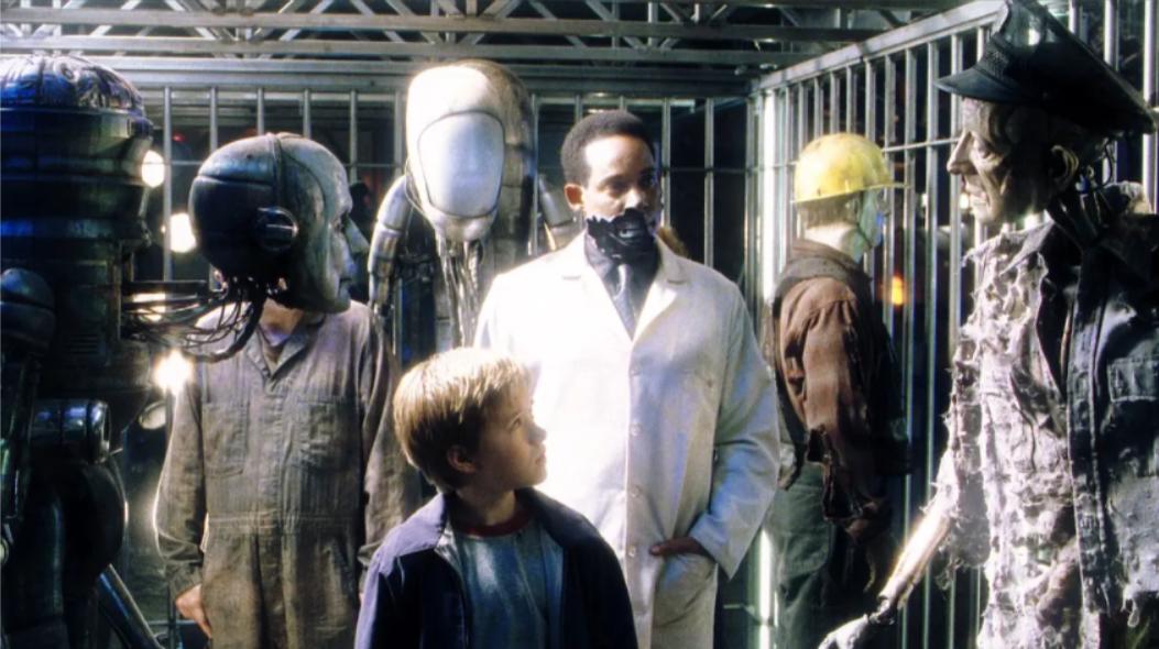 电影《人工智能AI》截图,从事各个行业的报废机器人们