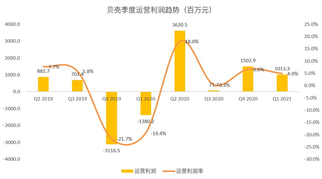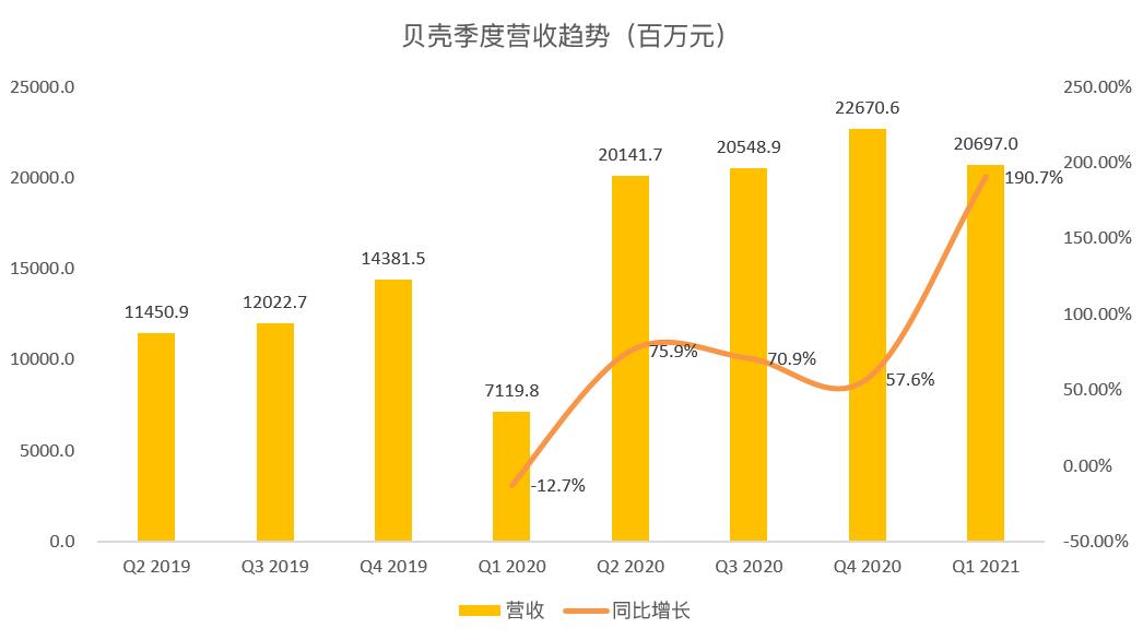 贝壳一季度营收207亿元,同比增长190.7%;经调整后净利润为15.02亿元,去年同期为亏损14.78亿元。这个成绩,稳稳超出预期。