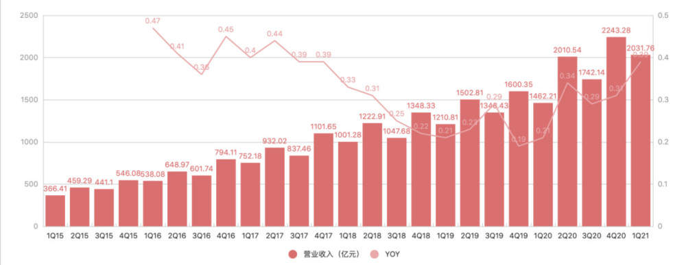整体来看,京东已走出用户增长困境,步入高速增长期,老用户和沉睡唤醒用户的活跃度在稳步提升。京东第一季度营收同比增长39%,较大程度超出了年活买家29%的同比增速,这也表明京东正处于高质量的增长模式。