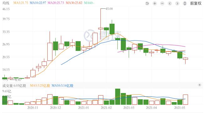 上市首日,Palantir股价即上涨了31%,市值达到209亿美元,但其实早在2015年,公司便以203亿美元的估值融到了8.8亿美元,这也意味着在五年中,其市场估值并没有什么变化。Palantir上市后的2020年三、四季度财报均显示了营收增长,2021年一季度营收更是达到了3.41亿美元,同比增长49%。然而,持续的营收增长并没有带来股价的一路上涨。