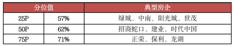 25分位值拿地权益从56%涨至57%,也是三个分位值中唯一一个出现上涨的分位,这意味着低权益比的房企相对更加注意权益比例的提升,强调有质量的发展,与此同时,若全年拿地权益低于57%,则处于行业较低水平,需要注意权益太低增收不增利的问题。