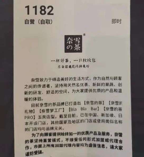 在搜集到的几张品牌小票中,像喜茶、奈雪的茶、茶百道、伏见桃山等品牌,或多或少地在小票中介绍了品牌的基本信息。