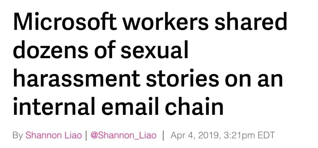 而这一系列连锁反应的源头,还要再早半年。一切都源自于2019年初,有位微软女性员工爆料称,自己在公司受到不公平待遇。