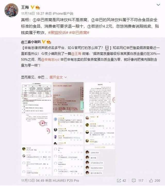 2020年11月,“时大漂亮”直播中售卖糖水燕窝,其账号被封停60天,辛有志个人账号被封停60天,和翊公司及其关联公司旗下猫妹妹、初瑞雪等27名带货主播封停账号15天。封停结束后,这些主播重新开始了直播带货。
