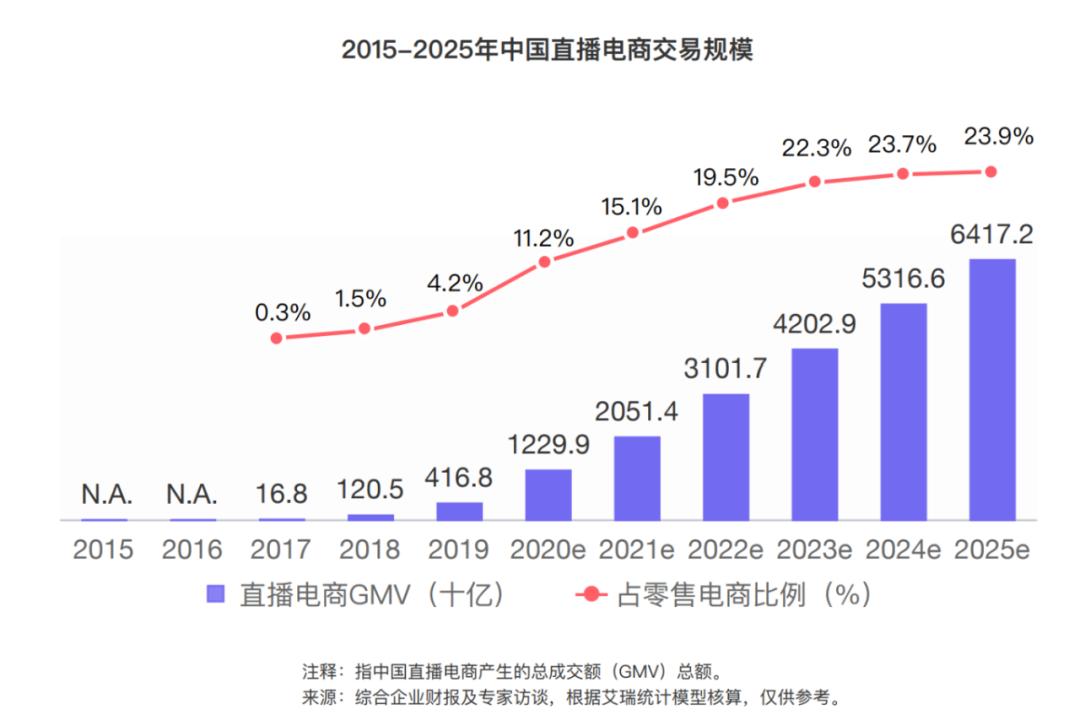 短短几年,直播电商行业就迈入了万亿市场规模,目前仍保持高速增长。小葫芦数据显示,预计到2025年,市场规模将达64172亿元。