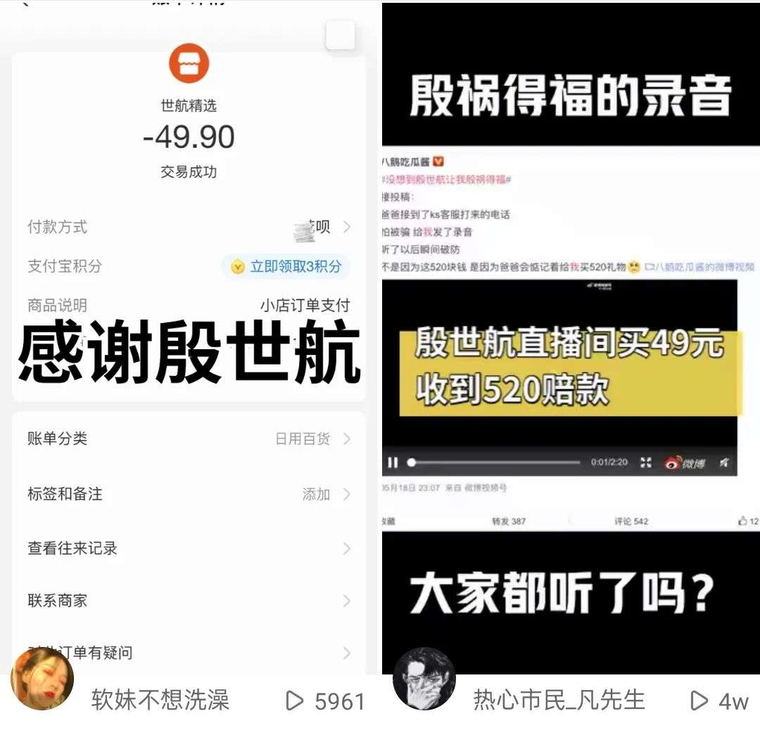 据快手用户发布的视频,用户确实得到了520元现金赔付,一个新的梗“殷祸得福”又开始流传。