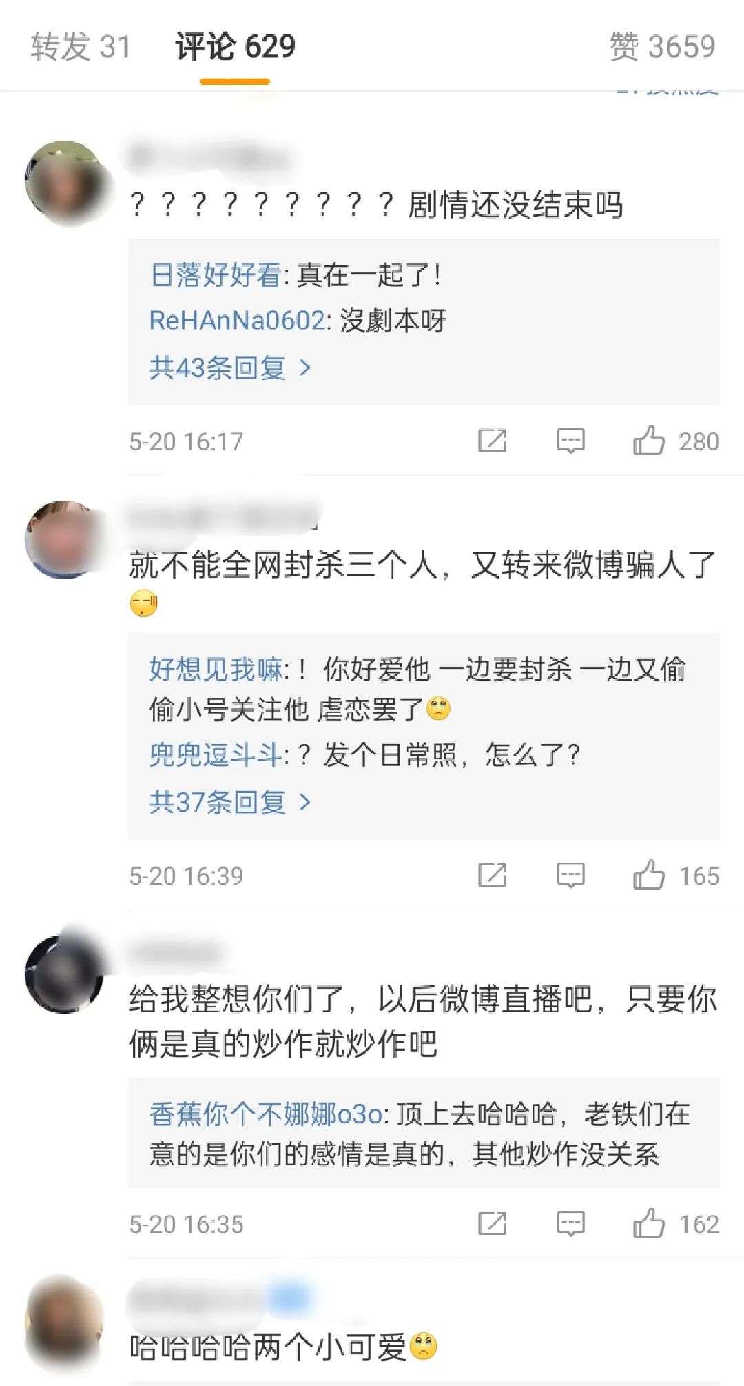 有人迷惑,这场大戏还未结束,但也有人期待他回归,还有人说,“只要你俩是真的,炒作就炒作吧。”