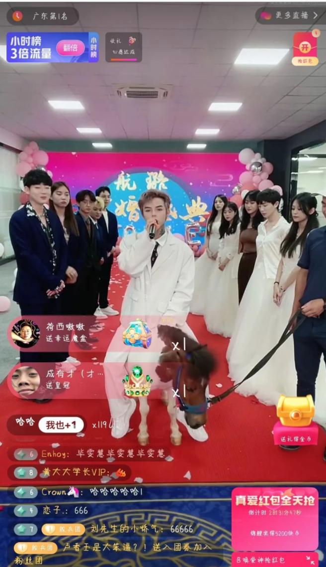 吃婚礼直播流量效应一直存在,殷世航也不是第一个吃螃蟹的网红。此前最出名的一场直播,大约是辛巴举办的“世纪婚礼”。
