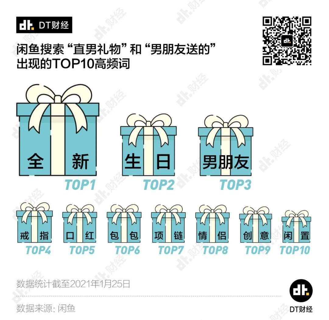 在闲鱼搜索关键词「男朋友送的」「男友送的」,我们发现姐妹们出手直男赠礼时,通常用「全新」「创意」或「闲置」形容它们。从词频来看,这些礼物大多是「戒指」「口红」等充满了象征意义的礼物。