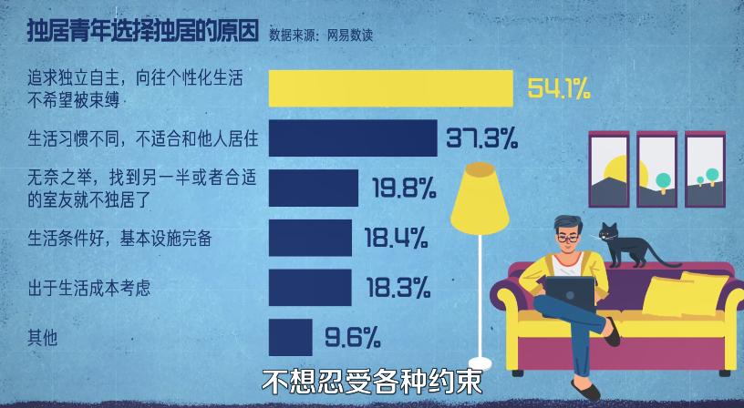 有调查研究显示,超过90%的独居青年选择独居的理由,是想要追求个性化生活,不想忍受各种约束。