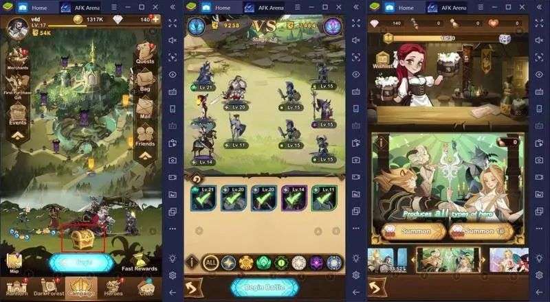 ▲ 《剑与远征》为首的“放置系”手游主打“随玩随停,轻松躺赢,休闲不肝”。图片:bluestacks