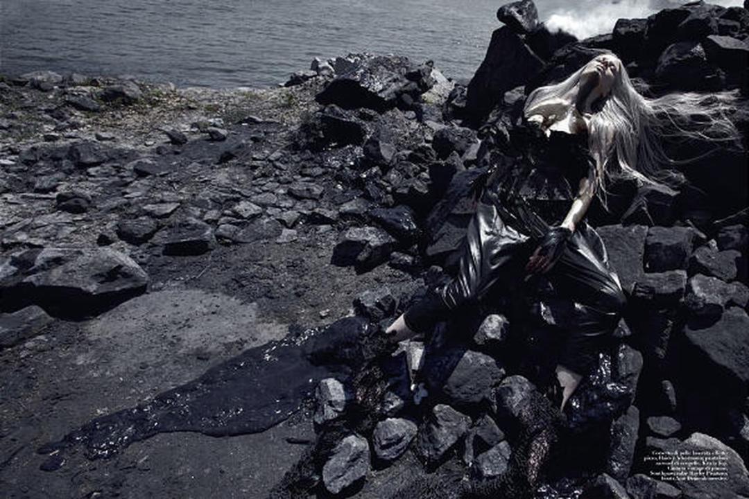 2010年,在墨西哥湾石油泄露事件被报道后,Franca Sozzani又以此为灵感拍摄封面。在封面中,超模穿戴华服,但背景却是晦暗的礁石和被污染的海岸线,有种末世般的悲凉氛围。