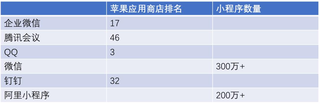 上图中数据分别来自:Quest Mobile和App Annie,此外在对待微信时,我们采取了小程序数量这一维度。