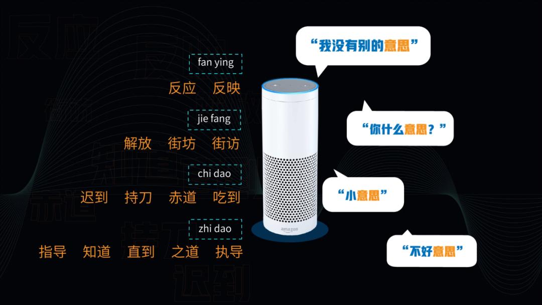 但在开放性语境下,智能音箱错误频出。 这是因为口语文本经常会出现歧义,机器难以理解,特别是在处理同音字繁多、语法复杂的中文时,歧义的现象尤其多见。