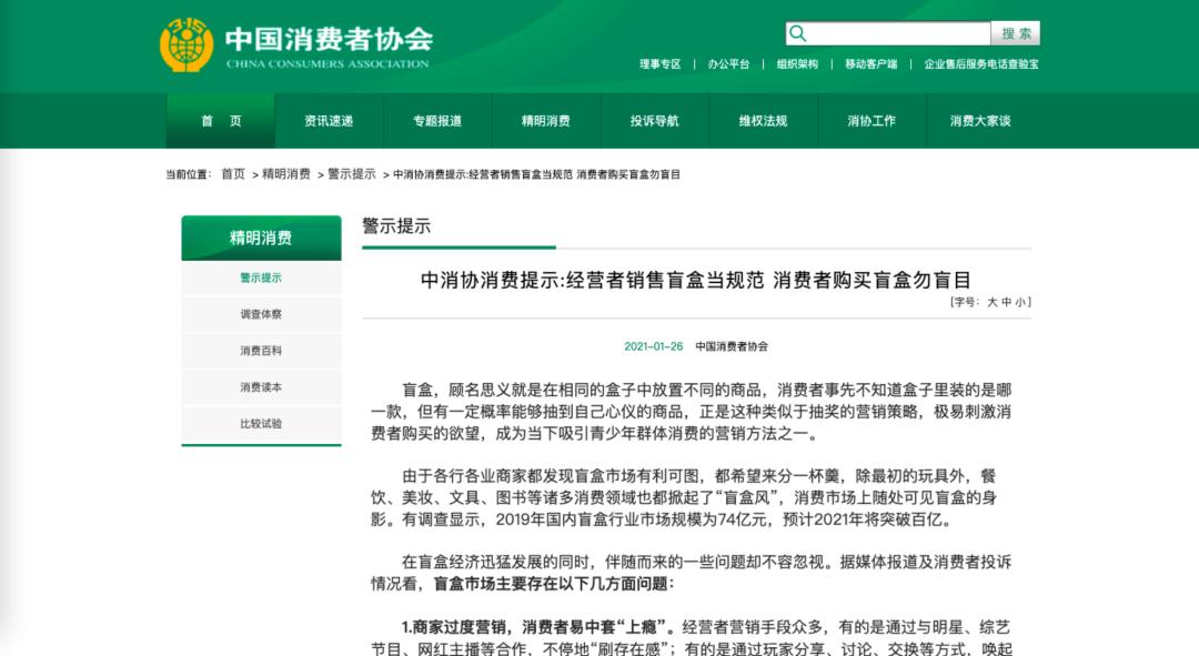 中消协出来点名,从其公布的案例,可看出是因为脱离掉IP内容后的盲盒,成为商家“投机”的手段,从而上升到消费者权益问题。