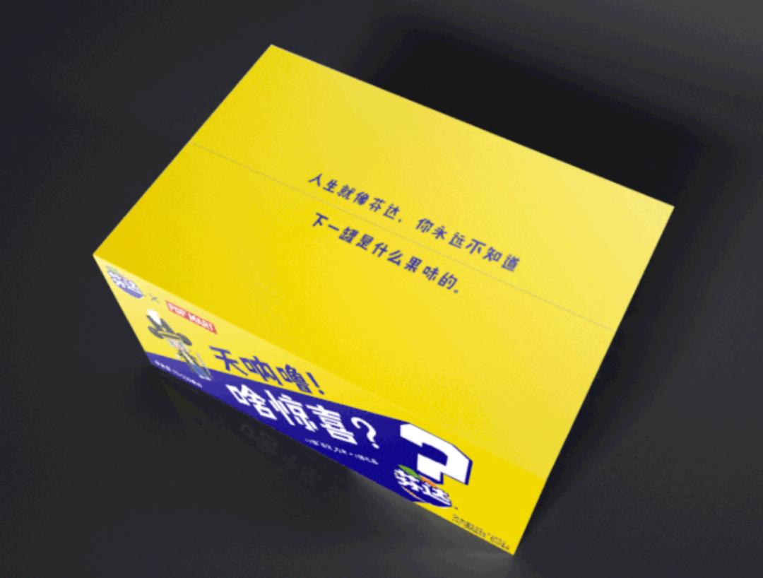 随后跟进的农夫山泉,虽然联名的营销内核不变,但包装了“盲水”的概念——神秘口味+未知盲盒,开始将“盲”用到自身产品身上。