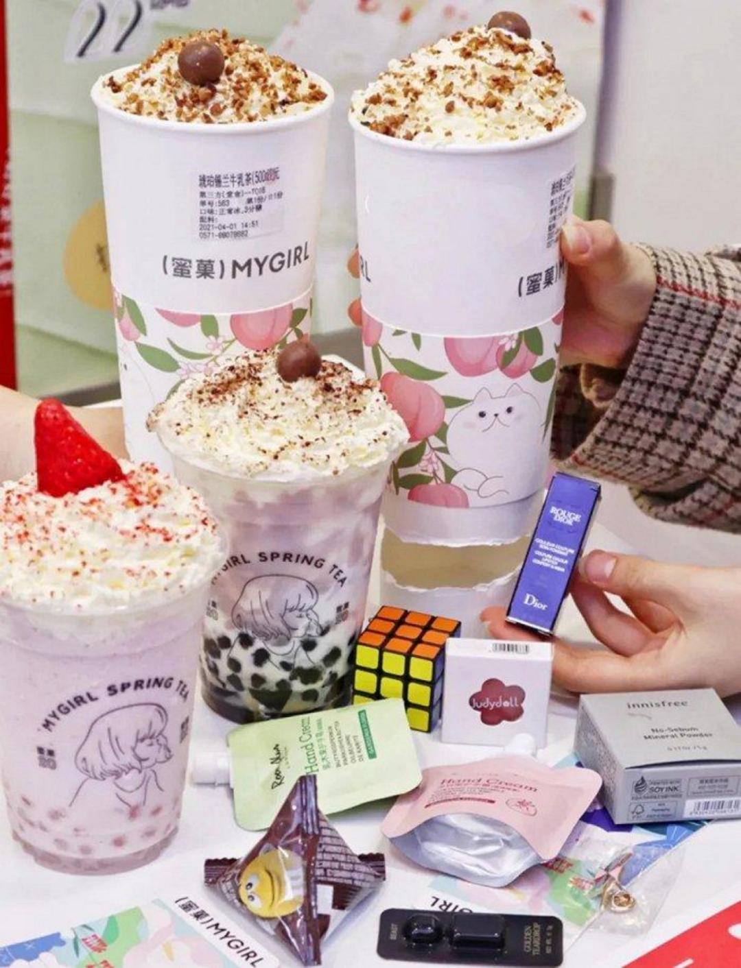 神奇的是,带火的这家奶茶品牌蜜菓,此前因为中空杯的设计,被吐槽“大杯变中杯”,是“坑货”。如今利用这个中空塞满口红、发卡、耳钉、钥匙扣等小物品,再用“盲盒”包装一番,一杯饮料的成本增加了,但引流效果上来了。