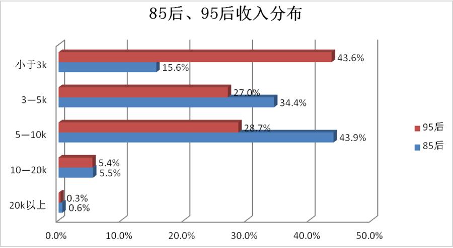 根据MobTech的《85、95、00后人群洞察白皮书》,月收入在10K以上的高收入人群中,95后所占的比例与85后相近,此外,有28.7%的95后的月收入可以达到5-10K。