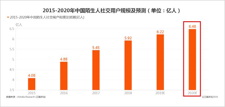 iiMedia Research的最新数据,到2020年,我国互联网陌生人社交的用户数量预计达到6.48亿。