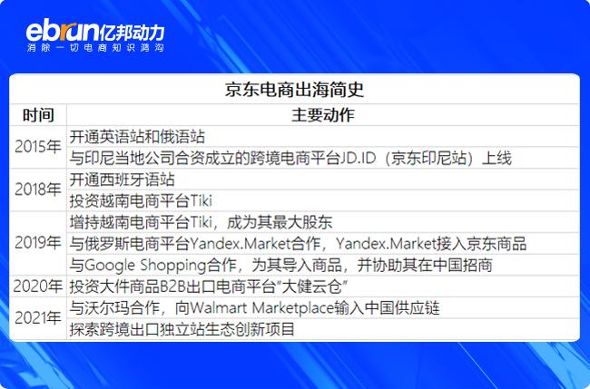 据了解,2015年11月,京东与印尼当地公司合资成立的跨境电商平台JD.ID(京东印尼站)上线;2018年1月,京东完成对越南电商平台Tiki的C轮投资(并于2019年增持Tiki,成为最大股东);2019年6月,京东与俄罗斯电商平台Yandex.Market达成战略合作,Yandex.Market接入京东商品;2019年8月,京东全球售宣布与Google Shopping达成合作,将平台热销品导入谷歌商品池的同时,也协助其在中国招商。