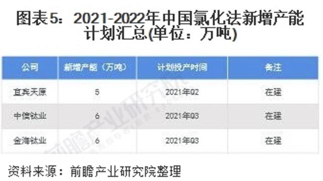 据前瞻研究院预计,未来两年中国至少将有29万吨氯化法钛白粉新增产能的投产。而据国家化工行业生产力促进中心钛白分中心和钛白粉联盟秘书处数据, 2020年中国钛白粉产量大约为351.2万吨,其中氯化法产量约32万吨。