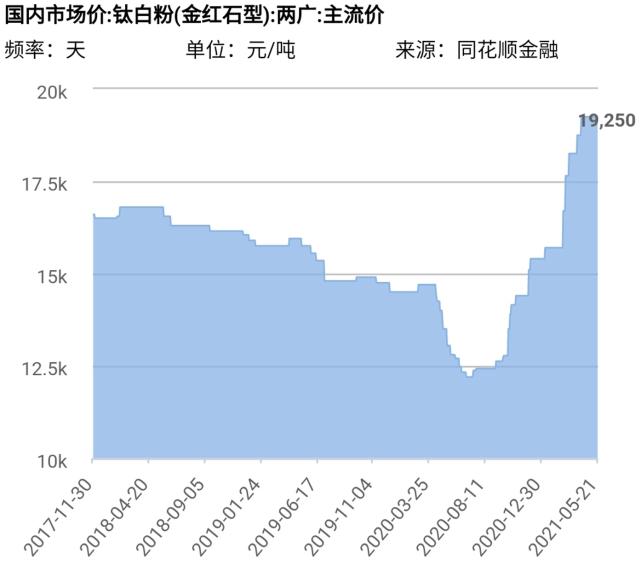 钛白粉年内5轮调价飙涨5000元:三班倒满负荷增产,下游涂料厂不敢涨