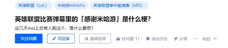 其二呢,关注MSI的朋友应该早就发现了。在Beryl还没背锅之前,从5月14日比赛首日开始就已经有“感谢米哈游”“感谢原神”的弹幕在各个直播间出现。