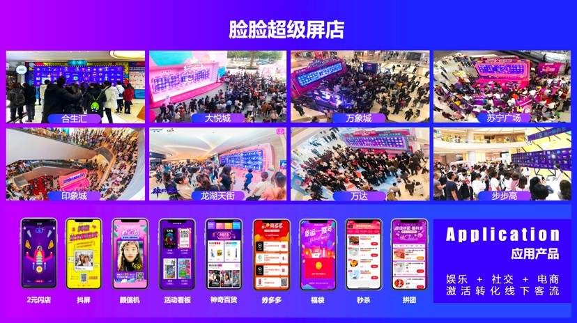 据脸脸 COO 浦希哲介绍,购物中心客流一般平均每天在 3-5万,脸脸通过布设在购物中心人流点位的大屏,可以实现10%左右的互动率(offline to online),在屏前被激活的客流又有30%完成进店销售转化(online to offline)。