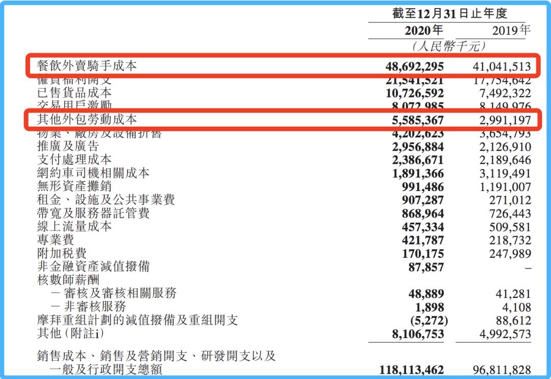 海豚投研指出,2020年美团餐饮+非餐外卖的人力外包费约为543亿元,相当于各类骑手总收入。