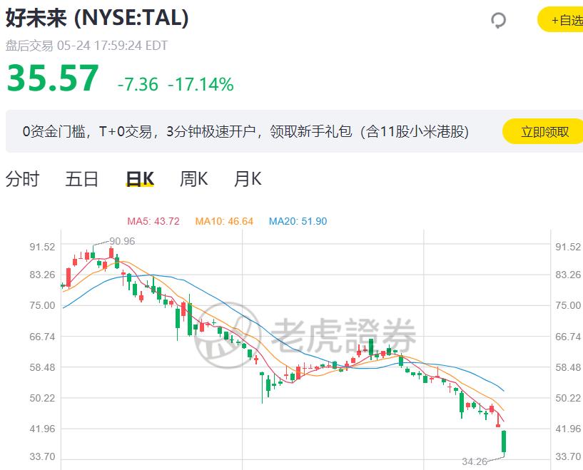同样的情况也发生在好未来身上,从2月90.96美元的高位,已经下跌60%。