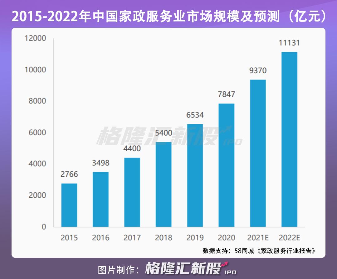 近年来,随着群众收入增长、老龄化加速、“全面二孩”政策实施等多种因素影响,家政服务业发展迅速。2018年我国家政服务业营业收入超过5700亿元,同比增速接近28%,预计到2022年其市场规模达到11131亿元,赛道前景较为广阔。