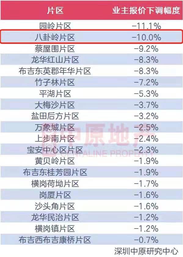 但深圳中原监测的数据显示,4月18日-24日的一周内,八卦岭片区报价下跌10%。