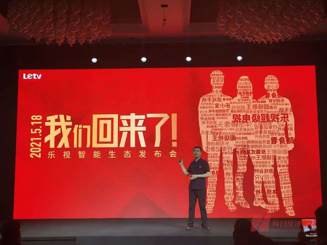 每经记者 张虹蕾 摄乐视智能生态发布会现场海报变更为“我们回来了”